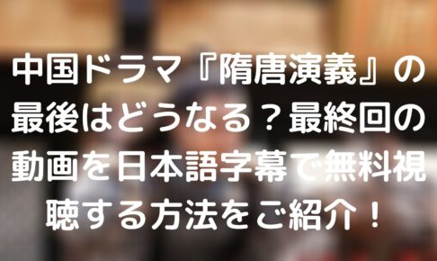 この記事では、中国ドラマ『隋唐演義』の最後はどうなる?最終回の動画を日本語字幕で無料視聴する方法をご紹介!していきます。 中国ドラマ「隋唐演義」は、隋と唐をめぐる知られざる戦いを描いた総製作費30億円超えの大作です。 中…
