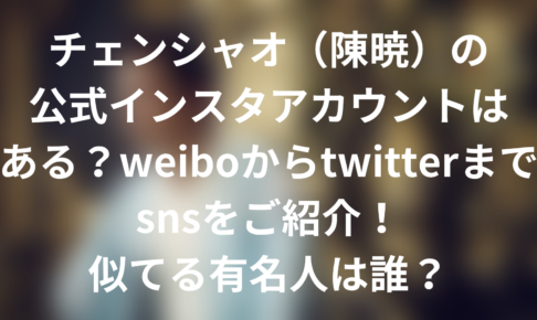 この記事では、チェンシャオ(陳暁)の公式インスタアカウントはある?weiboからtwitterまでsnsをご紹介!似てる有名人は誰?について紹介していきます。 チェン・シャオさんは、ドラマ「月下の恋歌 笑傲江湖」やドラマ…