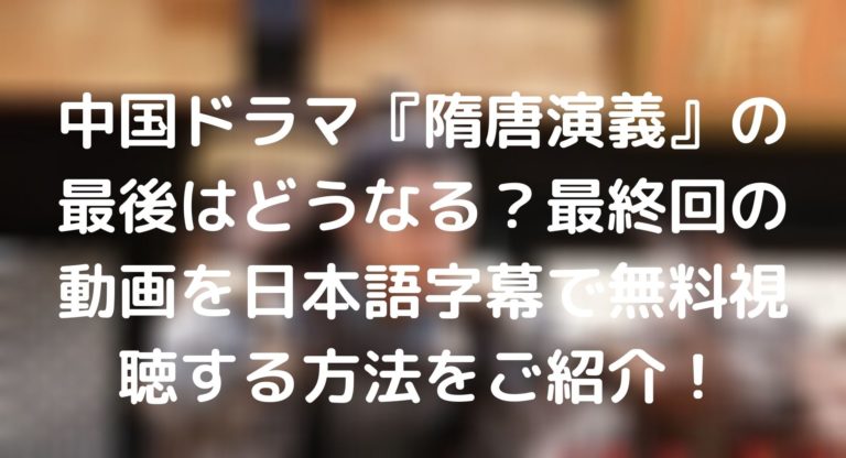 この記事では、中国ドラマ『隋唐演義』の最後はどうなる?最終回の動画を日本語字幕で無料視聴する方法をご紹介!していきます。 中国ドラマ「隋唐演義」は、隋と唐をめぐる知られざる戦いを描いた総製作費30億円超えの大作です。 中 … 続きを読む 中国ドラマ『隋唐演義』の最後はどうなる?最終回の動画を日本語字幕で無料視聴する方法をご紹介!