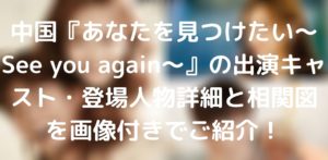 中国ドラマ『あなたを見つけたい~See you again~』の出演キャスト・登場人物詳細と相関図を画像付きでご紹介していきます。 中国ドラマ『あなたを見つけたい~See you again~』は、「過去10年間で最も素 … 続きを読む あなたを見つけたいのキャスト・相関図は?登場人物詳細を画像付きでご紹介!