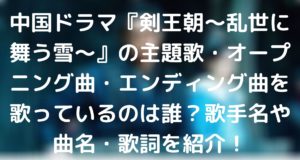 この記事では、中国ドラマ『剣王朝~乱世に舞う雪~』の主題歌・オープニング曲・エンディング曲を歌っているのは誰?歌手名や曲名・歌詞を紹介!について紹介していきます。 中国ドラマ『剣王朝~乱世に舞う雪~は、人気急上昇中の実力 … 続きを読む 剣王朝(乱世に舞う雪)の主題歌・オープニング曲・エンディング曲を歌っているのは誰?