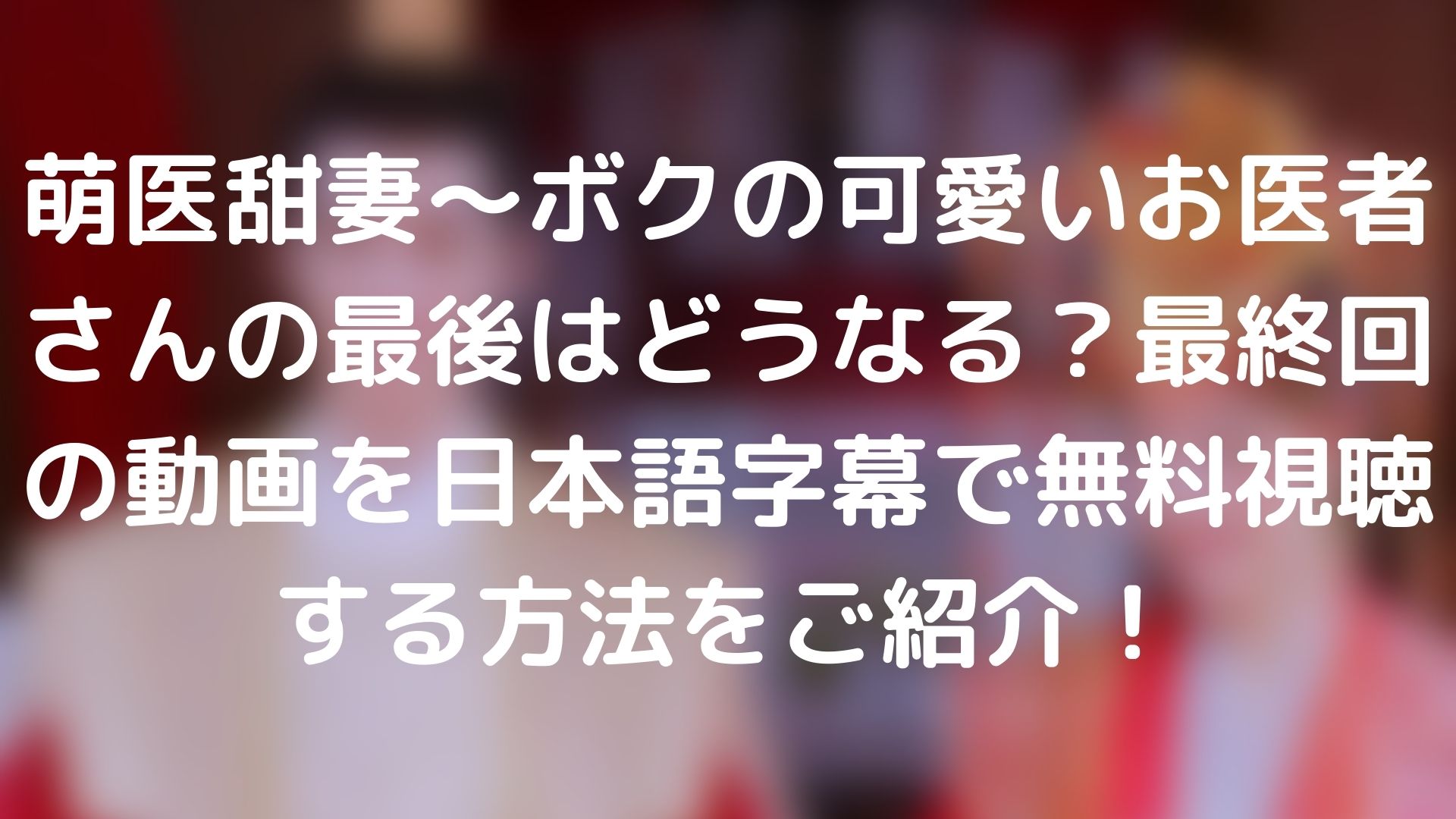 この記事では、ドラマ『萌医甜妻~ボクの可愛いお医者さん』の最後はどうなる?最終回の動画を日本語字幕で無料視聴する方法をご紹介!について紹介していきます。