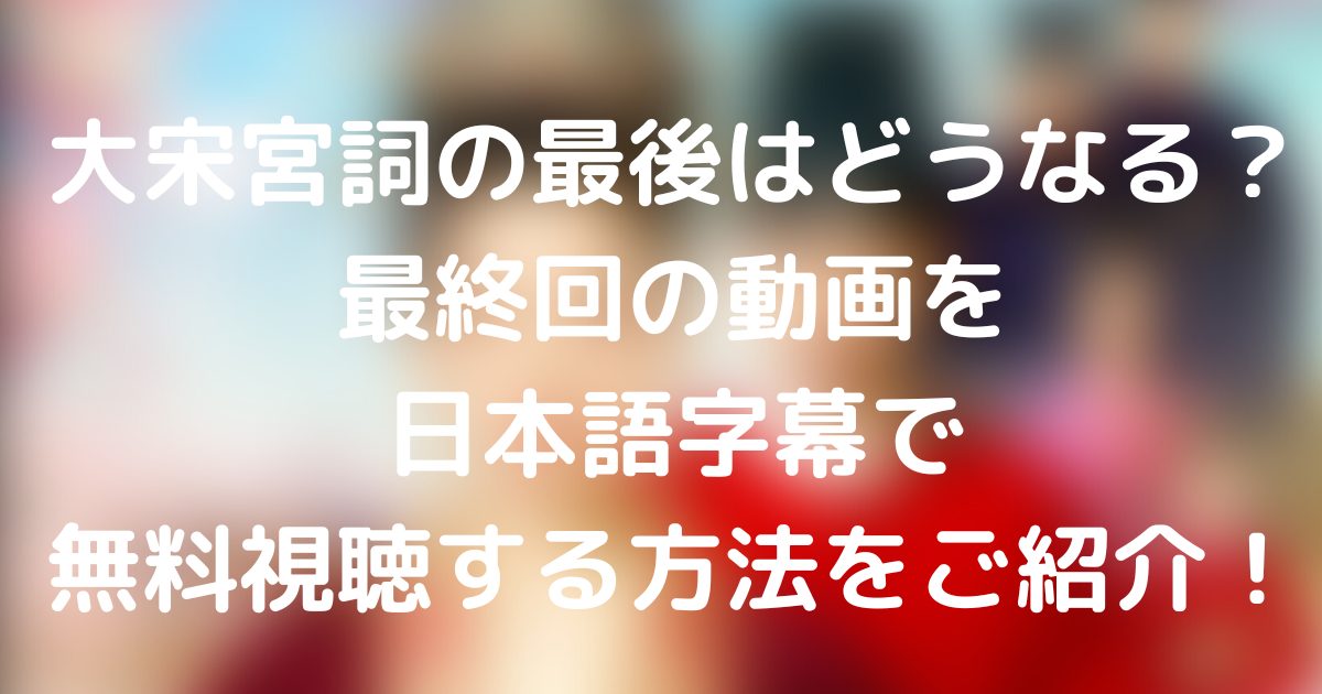 この記事では、『大宋宮詞』の最後はどうなる?最終回の動画を日本語字幕で無料視聴する方法をご紹介!について紹介していきます。